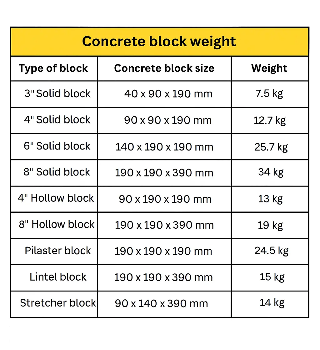 | Block Type | Density Range | Standard Weight | Common Uses |